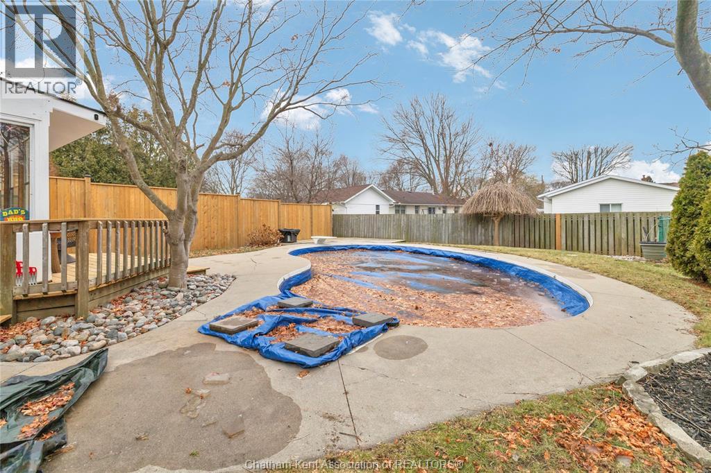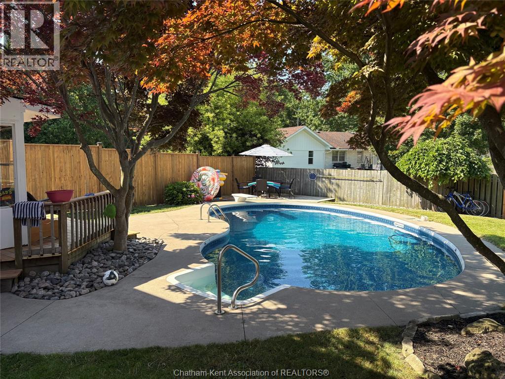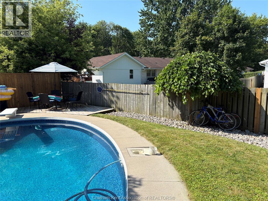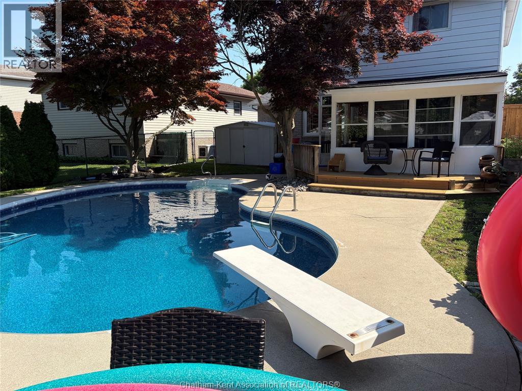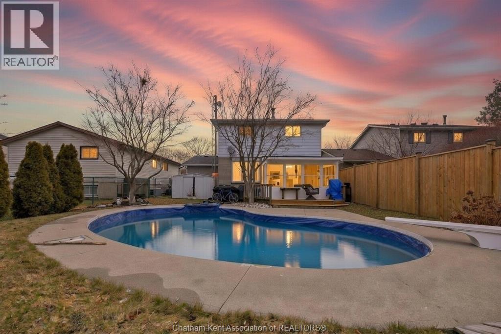 Beautifully maintained two-storey home tucked away on one of Chatham’s quietest and most family-friendly streets. This 3 Bdrm, 1.5 bathroom property offers the perfect balance of peaceful living with convenient access to amenities and quick connections to the 401. Step inside and be immediately impressed by the soaring 20-foot ceilings in the foyer, creating a bright and open first impression. Off the entrance is the front livingroom featuring a gas fireplace and a large window overlooking the quiet street. The main floor flows effortlessly, offering a functional eat-in kitchen/dining room with sliding doors leading to the sunroom, which opens to your private backyard oasis complete with an in-ground pool (33 x 17) —perfect for summer entertaining and family fun. Just off the kitchen is a spacious additional room, currently used as a second living area but easily suited as a formal dining room or flex space to meet your needs.Also on the main floor, you’ll find a convenient 2 piece bathroom, interior access to the one-car garage, and access to the fully finished basement. The lower level is thoughtfully designed and full of character, featuring a fun, sports-themed atmosphere that’s ready for game nights, entertaining, or a cozy retreat. Upstairs, the second level offers three generously sized bedrooms and a 4 piece family bathroom, providing comfortable and functional living space for a growing family.Tastefully decorated throughout, located on an exceptionally quiet street, and offering outdoor living with a pool—this home truly checks all the boxes. 74 Bruinsma Avenue is a fantastic opportunity to enjoy family living in one of Chatham’s most sought-after neighbourhoods. (id:4069)