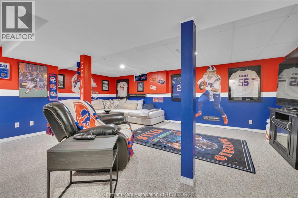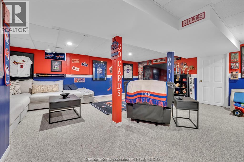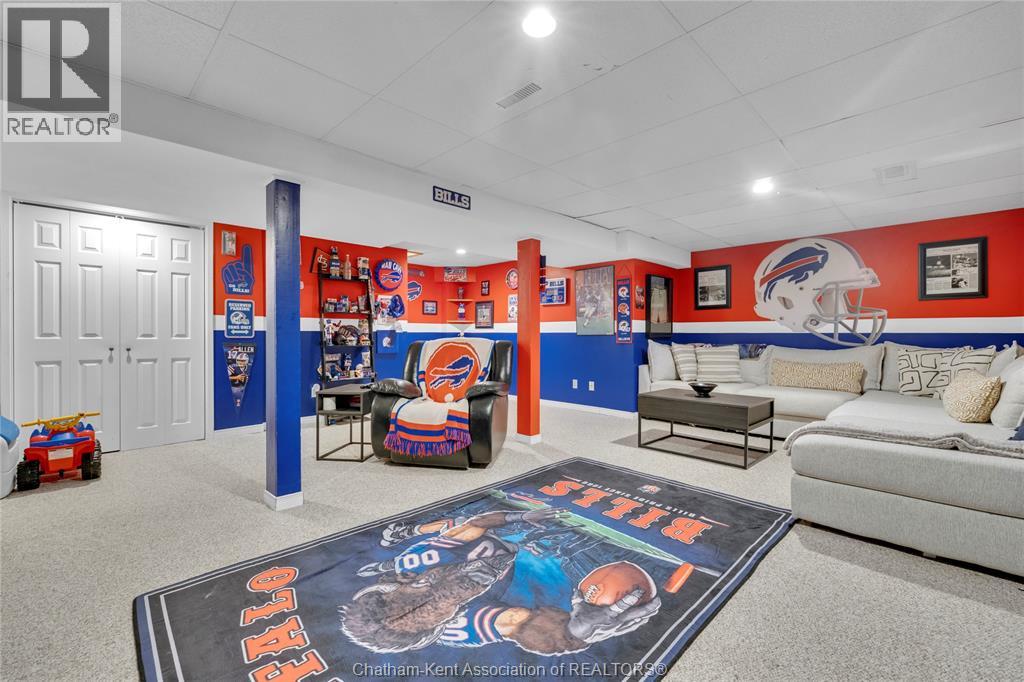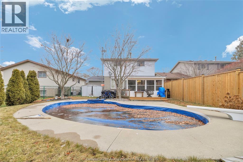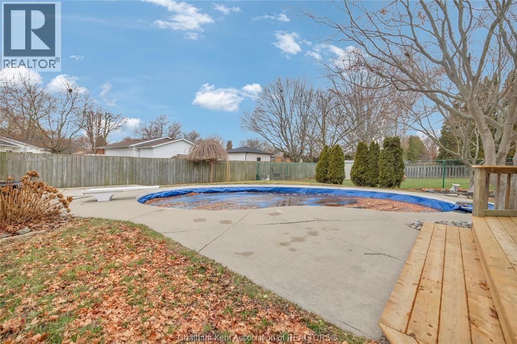 Beautifully maintained two-storey home tucked away on one of Chatham’s quietest and most family-friendly streets. This 3 Bdrm, 1.5 bathroom property offers the perfect balance of peaceful living with convenient access to amenities and quick connections to the 401. Step inside and be immediately impressed by the soaring 20-foot ceilings in the foyer, creating a bright and open first impression. Off the entrance is the front livingroom featuring a gas fireplace and a large window overlooking the quiet street. The main floor flows effortlessly, offering a functional eat-in kitchen/dining room with sliding doors leading to the sunroom, which opens to your private backyard oasis complete with an in-ground pool (33 x 17) —perfect for summer entertaining and family fun. Just off the kitchen is a spacious additional room, currently used as a second living area but easily suited as a formal dining room or flex space to meet your needs.Also on the main floor, you’ll find a convenient 2 piece bathroom, interior access to the one-car garage, and access to the fully finished basement. The lower level is thoughtfully designed and full of character, featuring a fun, sports-themed atmosphere that’s ready for game nights, entertaining, or a cozy retreat. Upstairs, the second level offers three generously sized bedrooms and a 4 piece family bathroom, providing comfortable and functional living space for a growing family.Tastefully decorated throughout, located on an exceptionally quiet street, and offering outdoor living with a pool—this home truly checks all the boxes. 74 Bruinsma Avenue is a fantastic opportunity to enjoy family living in one of Chatham’s most sought-after neighbourhoods. (id:4069)